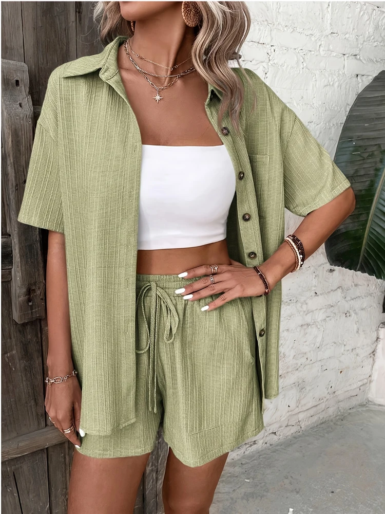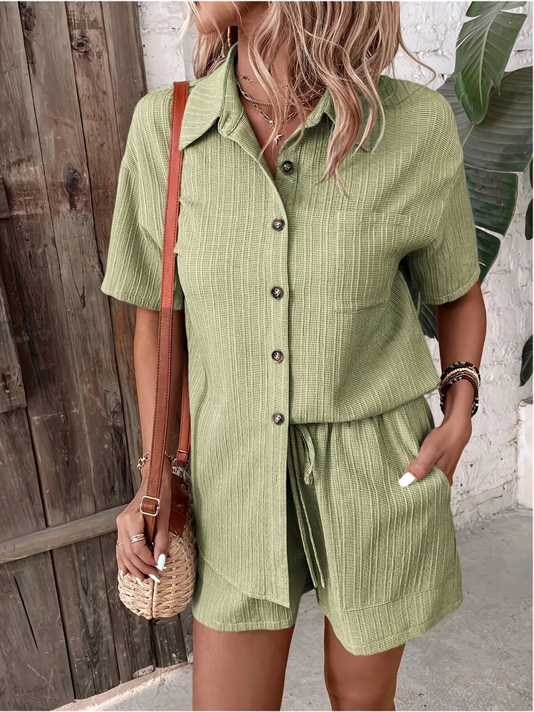 The button decoration adds a touch of sophistication, elevating your casual beach look.