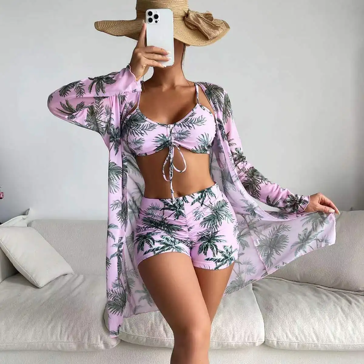 Summer 2024 Print Swimsuits Tankini Sets Female Swimwear Sports Beach Wear Three-Piece Bathing Suits Pool Women's Swimming Suit